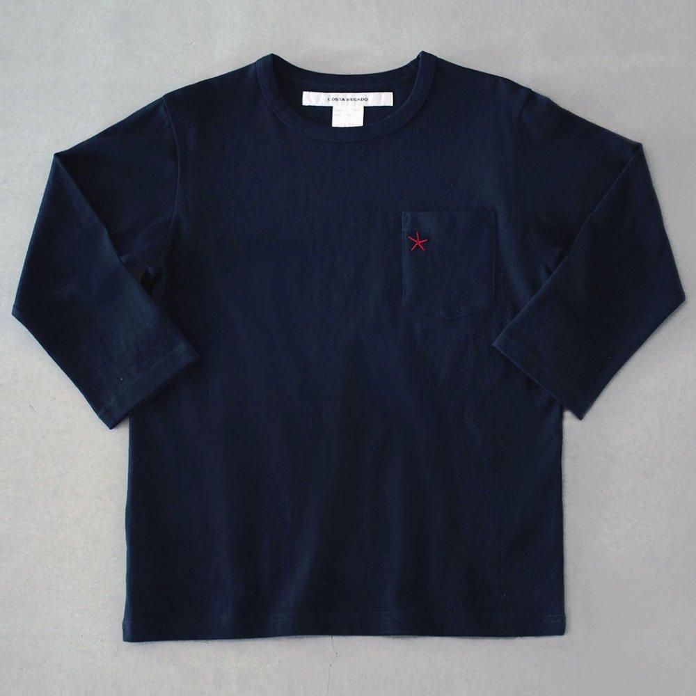 T-shirt 7.8oz three-quarter sleeves navy “hitode” with pocket